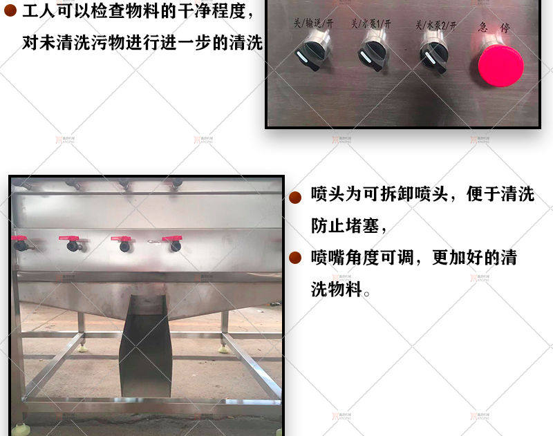 新型山药专用清洗机,又可称为滚杠式高压喷淋清洗机,主要用于山药、莲藕等表面泥土清洗作业,该机清洗效果好,能有效清洗物料标表面的泥土,不损伤表皮,且可以实现连续式作业,提高生产效率.